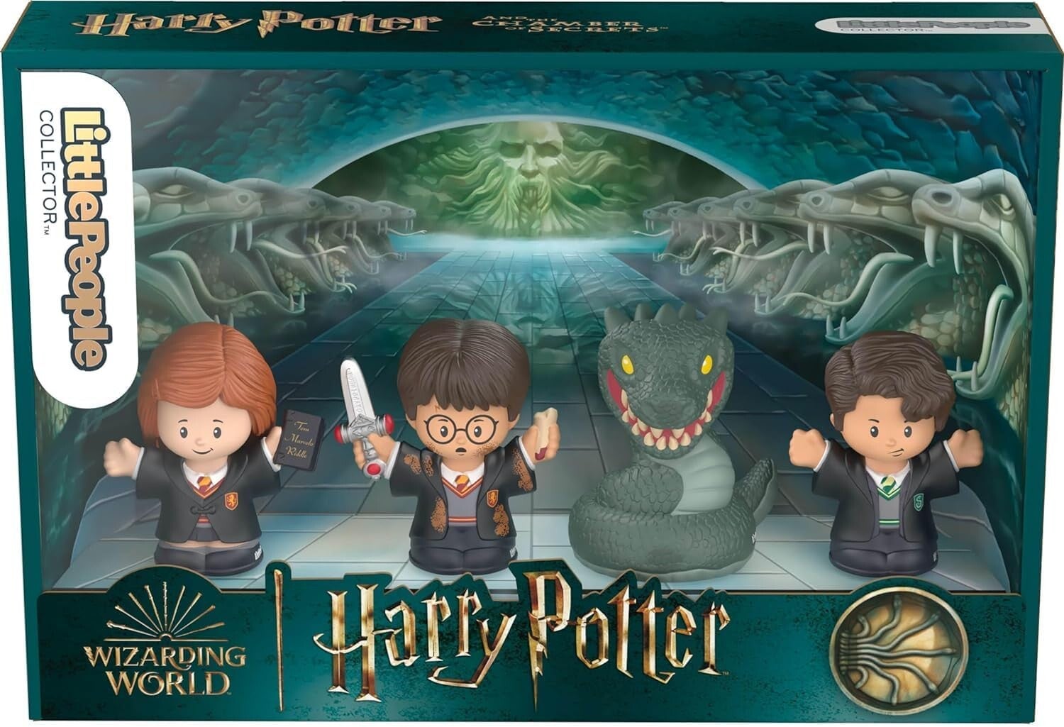 Deze Little People Collector Harry Potter en de Geheime Kamer van Fisher-Price is een superleuke set voor de verzamelaars. Deze must-have figurenset bevat Harry Potter, Ginny Wemel, de jonge Marten Vilijn en de venijnige Basilisk, allemaal in de vorm van Little People figuurtjes. De set wordt geleverd in een verpakking die de mysterieuze geheime kamer van Zalazar Zwadderich tot in elk detail tot leven brengt - een perfecte aanwinst voor de presentatie van elke verzamelaar. Speciale editie van de Little People Collector set ter gelegenheid van de tweede film in de serie, Harry Potter en de Geheime Kamer De set bevat Harry Potter die het zwaard van Griffoendor en de hoektand van de Basilisk vasthoudt, Ginny Wemel met het dagboek van Marten Vilijn, de jonge Marten Vilijn en de Basilisk Elk figuurtje is ruim 6 cm groot.