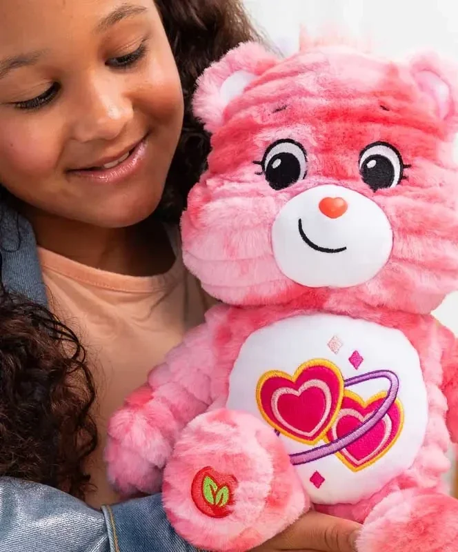 Maak je klaar voor spannende nieuwe avonturen vol delen en zorgzaamheid met Troetelbeertjes Colour Splash Love a Lot Bear! Deze lieve en vrolijke beer maakt deel uit van de gloednieuwe Care Bears Colour Splash-serie en heeft een levendig roze tie-dye design met zachte, gestreepte patronen. Het resultaat is een onweerstaanbaar knuffelbaar exemplaar, perfect om mee te knuffelen. Love a lot Bear iconische buikbadge is prachtig opnieuw vormgegeven met schitterend borduurwerk. Twee veelkleurige harten, omringd door een paarse ring en sprankelende rode en roze accenten, symboliseren haar missie om liefde te verspreiden en te laten groeien waar ze ook gaat. Deze beer staat bekend om haar passie voor alles wat met liefde te maken heeft en doet altijd haar best om anderen te helpen hun hart te delen. Bovendien is ze gemaakt van duurzame materialen, waardoor ze net zo goed is voor de planeet als voor haar vrienden. Of ze nu knuffels uitdeelt, vriendelijkheid inspireert of iemands dag opfleurt, ze herinnert ons eraan dat liefde alles beter maakt. Verzamel haar en de rest van de Colour Splash-serie om je Care Bears-familie een extra dosis liefde te geven.