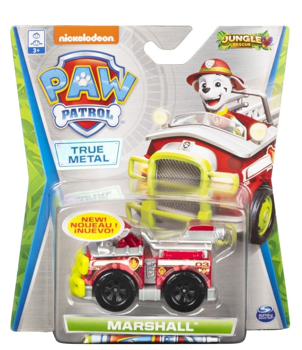 Super veel Paw Patrol plezier met deze nieuwe die-cast Paw Patrol True Metal Jungle Marshall.Race samen met jouw Marshall een nieuw avontuur tegemoet.